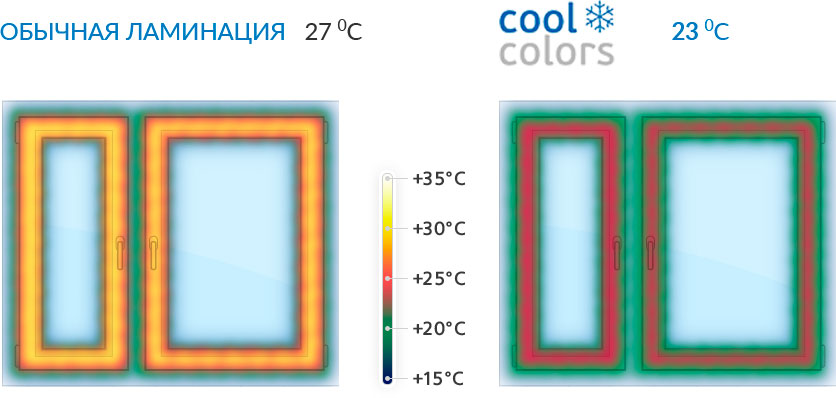 Ламинация COOL COLORS обладает высокой устойчивостью к механическим воздействиям и погодным условиям. Она не выгорает на солнце и легко выдерживает перепады температуры.